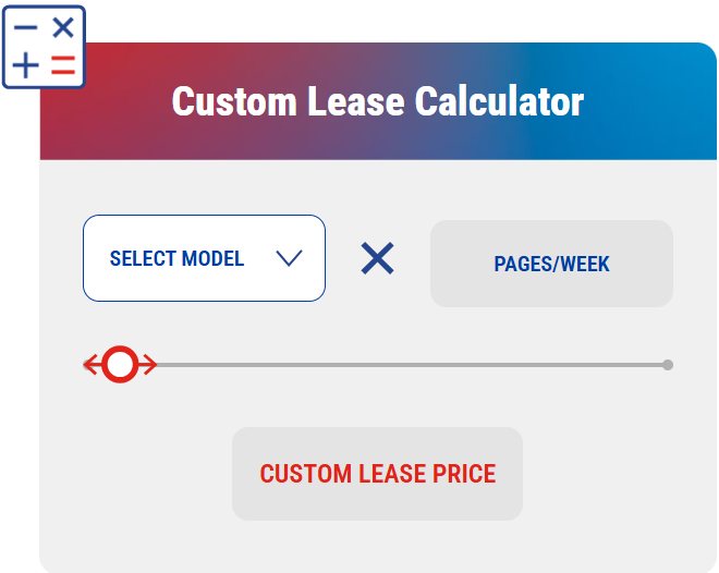 Take advantage of your print volume and save money on your next plotter. Select a model, choose the number of pages per week you print and we'll show you your monthly payment.